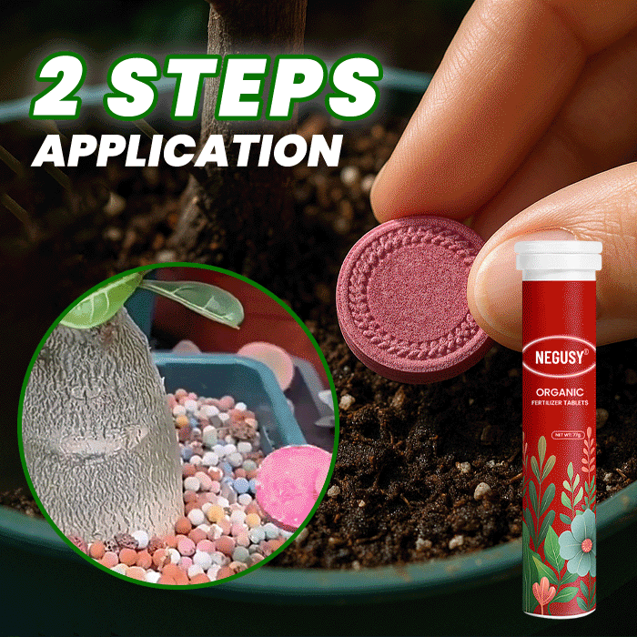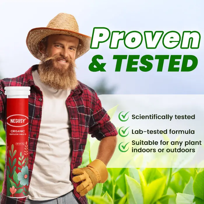 Give your plants the nutrients they deserve — the easy, natural way. Our NEGUSY® Organic Fertilizer Tablets provide long-lasting nourishment for up to 60 days, keeping your plants lush, strong, and beautiful with zero effort.